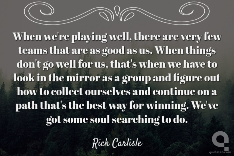 When we're playing well, there are very few teams that are as good as us. When things don't go well for us, that's when we have to look in the mirror as a group and figure out how to collect ourselves and continue on a path that's the best way for winning. We've got some soul searching to do.