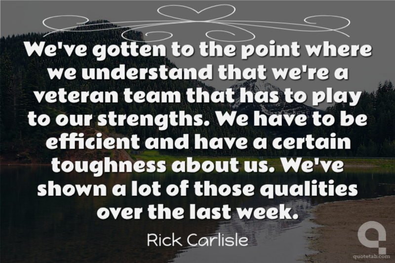 We've gotten to the point where we understand that we're a veteran team that has to play to our strengths. We have to be efficient and have a certain toughness about us. We've shown a lot of those qualities over the last week.