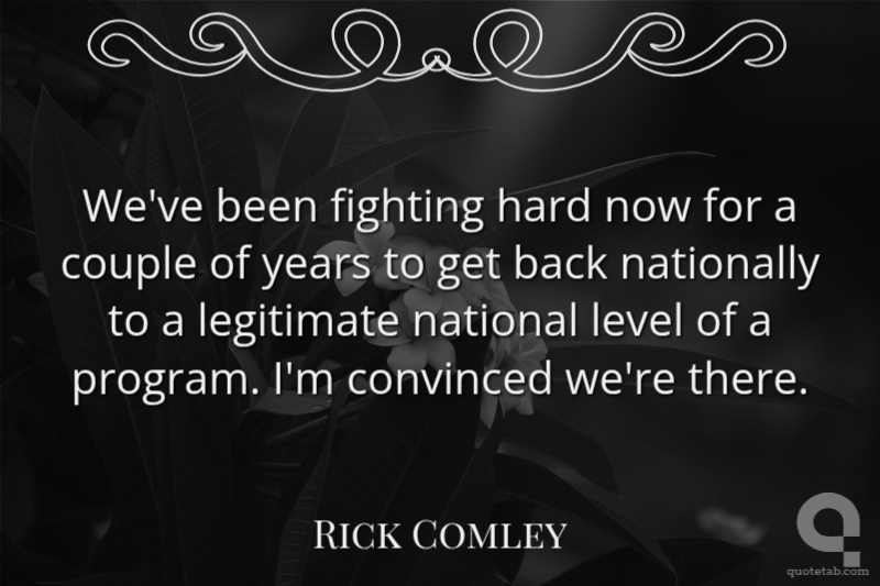 We've been fighting hard now for a couple of years to get back nationally to a legitimate national level of a program. I'm convinced we're there.