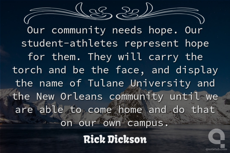 Our community needs hope. Our student-athletes represent hope for them. They will carry the torch and be the face, and display the name of Tulane University and the New Orleans community until we are able to come home and do that on our own campus.