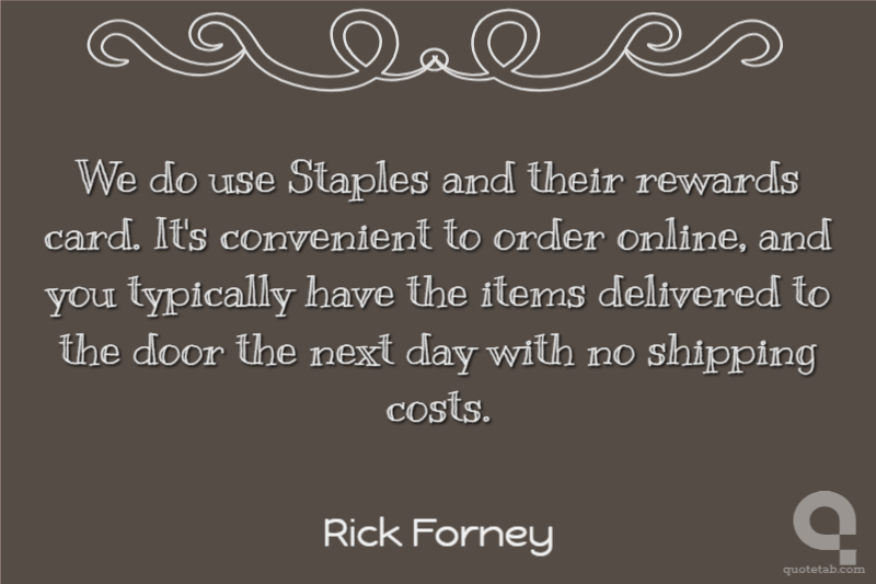 We do use Staples and their rewards card. It's convenient to order online, and you typically have the items delivered to the door the next day with no shipping costs.