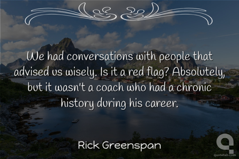We had conversations with people that advised us wisely. Is it a red flag? Absolutely, but it wasn't a coach who had a chronic history during his career.
