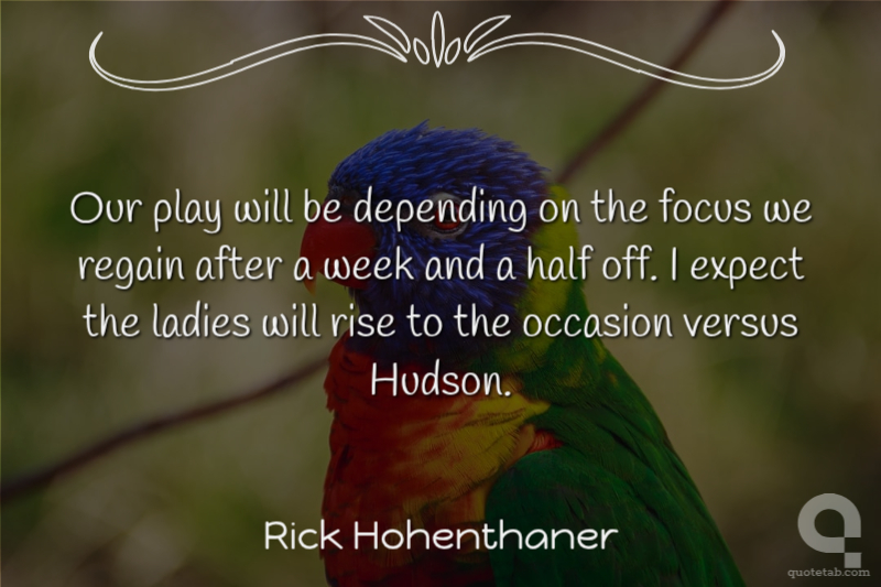 Our play will be depending on the focus we regain after a week and a half off. I expect the ladies will rise to the occasion versus Hudson.