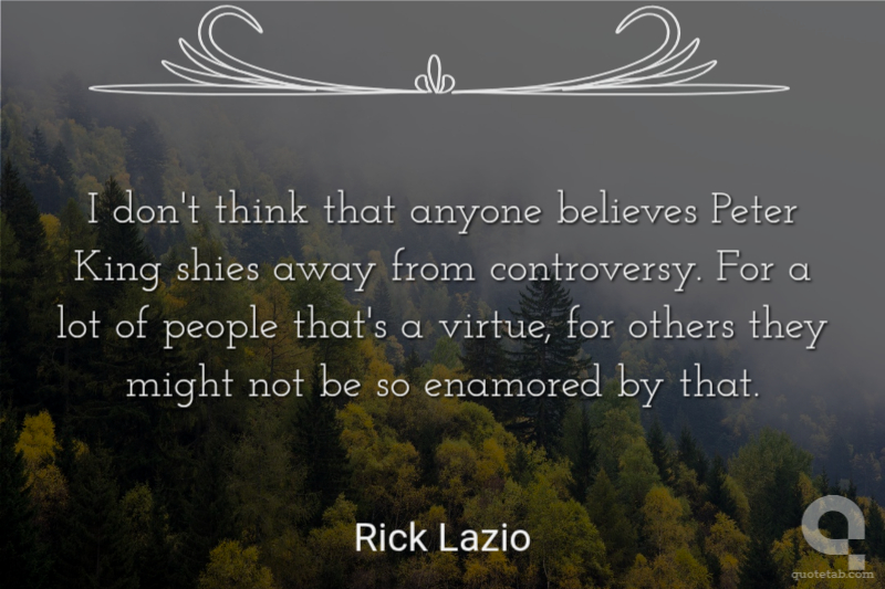 I don't think that anyone believes Peter King shies away from controversy. For a lot of people that's a virtue, for others they might not be so enamored by that.