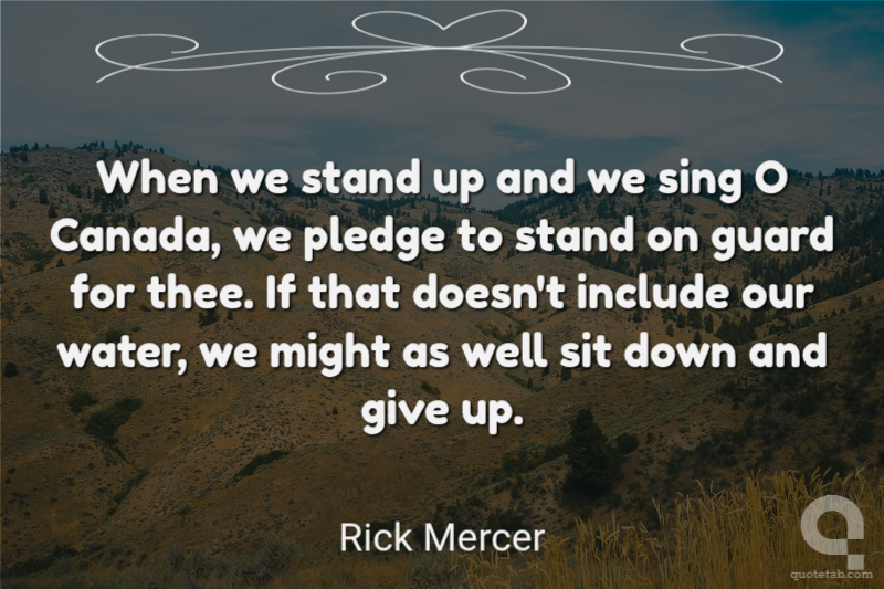 When we stand up and we sing O Canada, we pledge to stand on guard for thee. If that doesn't include our water, we might as well sit down and give up.