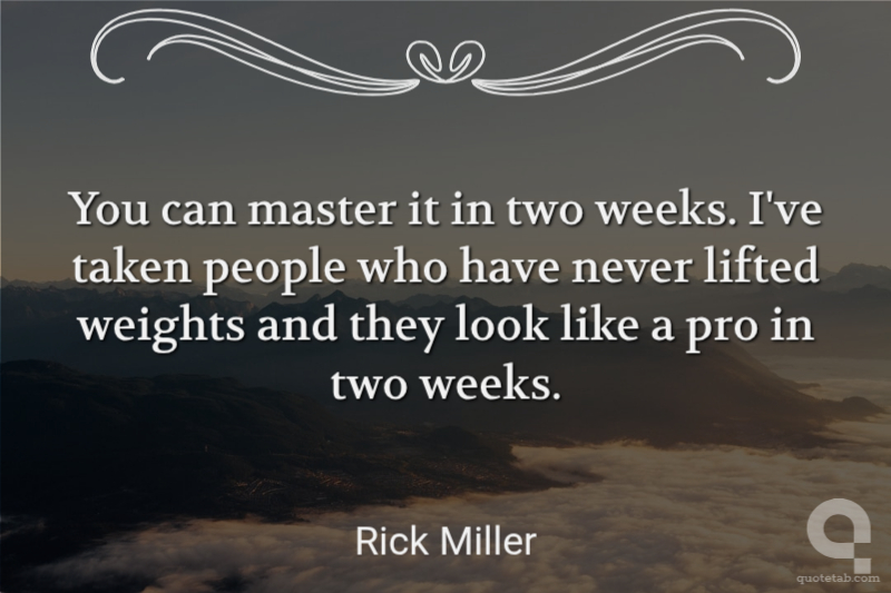 You can master it in two weeks. I've taken people who have never lifted weights and they look like a pro in two weeks.