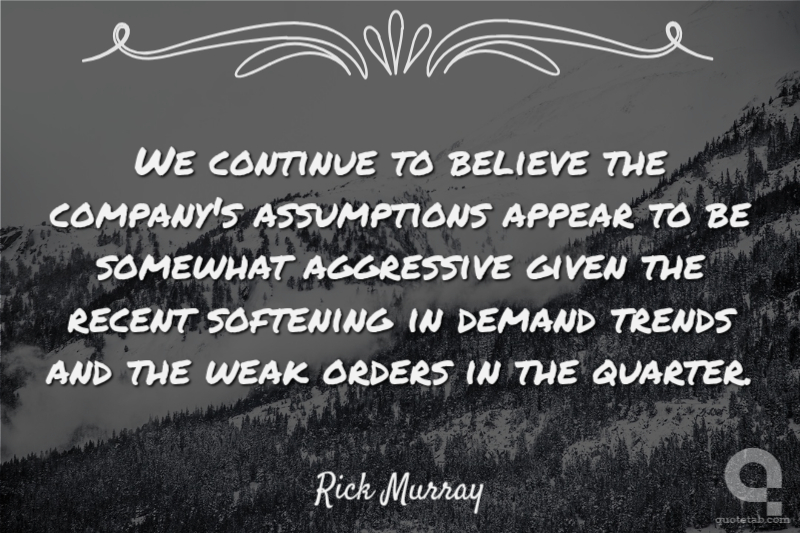We continue to believe the company's assumptions appear to be somewhat aggressive given the recent softening in demand trends and the weak orders in the quarter.