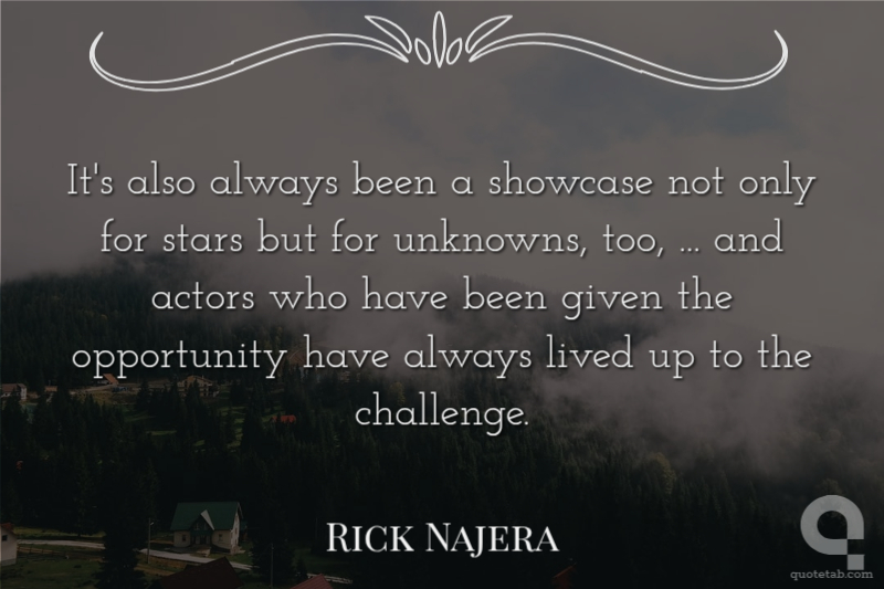 It's also always been a showcase not only for stars but for unknowns, too, ... and actors who have been given the opportunity have always lived up to the challenge.