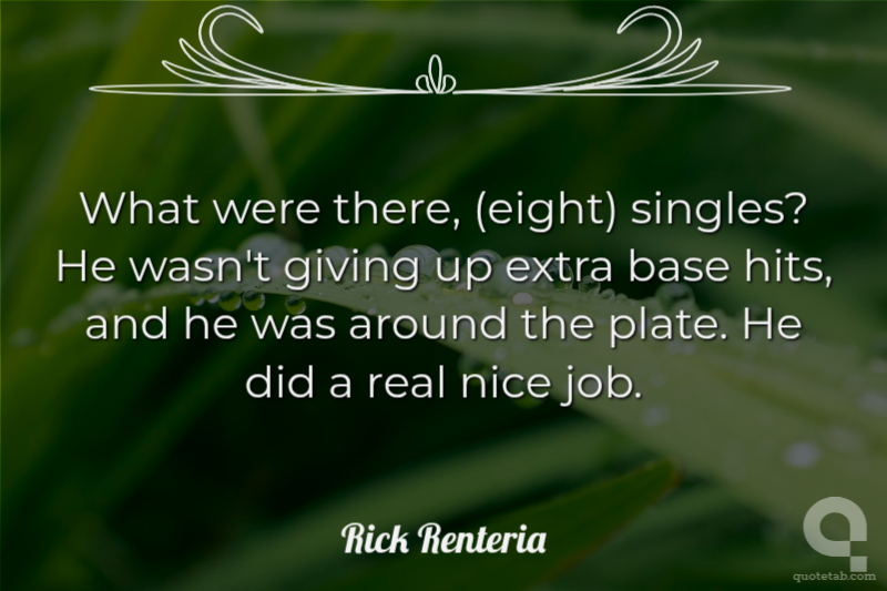 What were there, (eight) singles? He wasn't giving up extra base hits, and he was around the plate. He did a real nice job.
