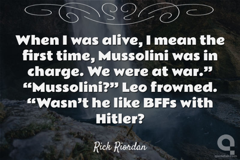 When I was alive, I mean the first time, Mussolini was in charge. We were at war.” “Mussolini?” Leo frowned. “Wasn’t he like BFFs with Hitler?