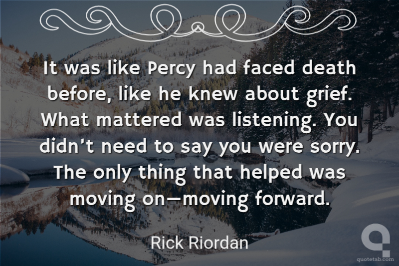 It was like Percy had faced death before, like he knew about grief. What mattered was listening. You didn’t need to say you were sorry. The only thing that helped was moving on—moving forward.
