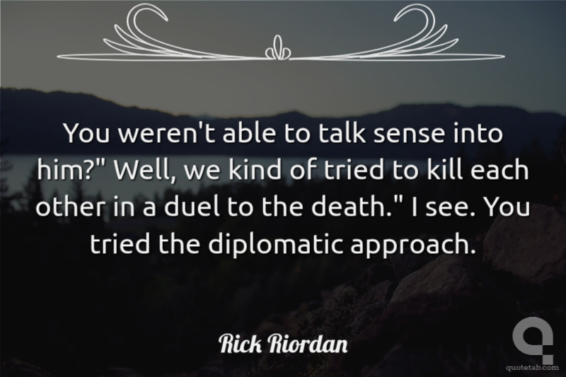 You weren't able to talk sense into him?" Well, we kind of tried to kill each other in a duel to the death." I see. You tried the diplomatic approach.
