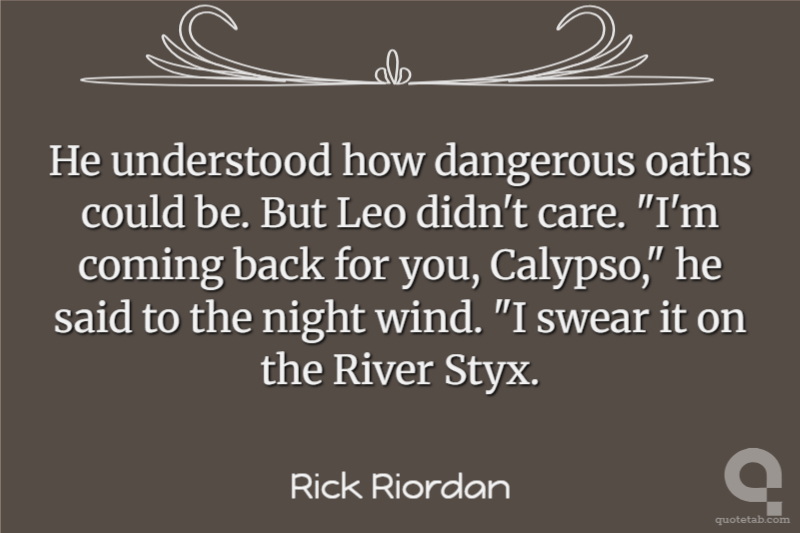 He understood how dangerous oaths could be. But Leo didn't care. "I'm coming back for you, Calypso," he said to the night wind. "I swear it on the River Styx.