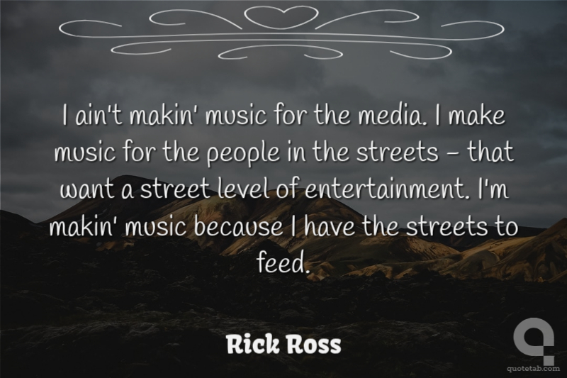 I ain't makin' music for the media. I make music for the people in the streets - that want a street level of entertainment. I'm makin' music because I have the streets to feed.
