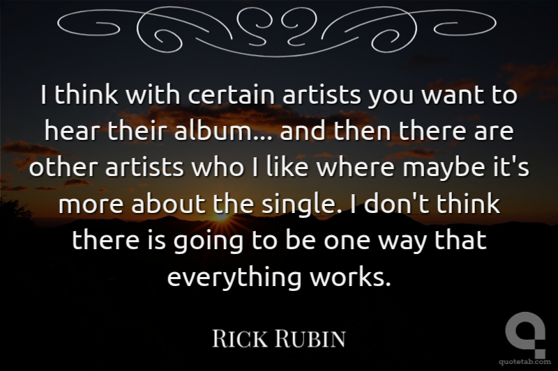 I think with certain artists you want to hear their album... and then there are other artists who I like where maybe it's more about the single. I don't think there is going to be one way that everything works.