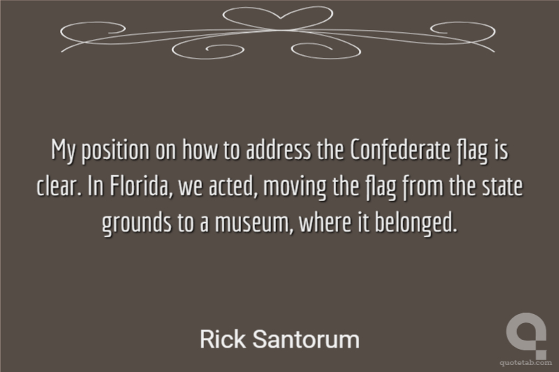 My position on how to address the Confederate flag is clear. In Florida, we acted, moving the flag from the state grounds to a museum, where it belonged.