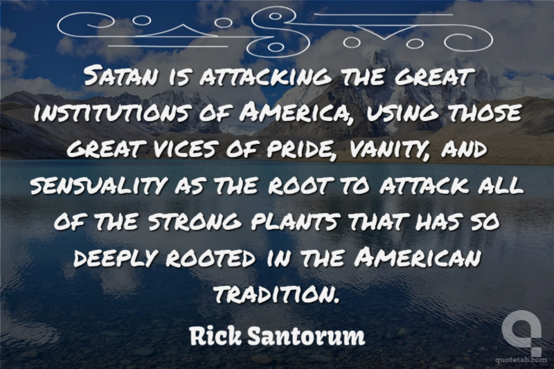Satan is attacking the great institutions of America, using those great vices of pride, vanity, and sensuality as the root to attack all of the strong plants that has so deeply rooted in the American tradition.