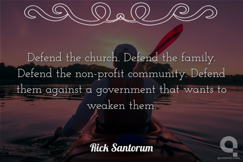 Defend the church. Defend the family. Defend the non-profit community. Defend them against a government that wants to weaken them.