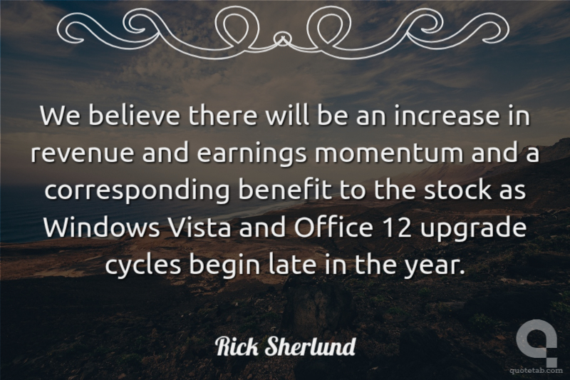 We believe there will be an increase in revenue and earnings momentum and a corresponding benefit to the stock as Windows Vista and Office 12 upgrade cycles begin late in the year.