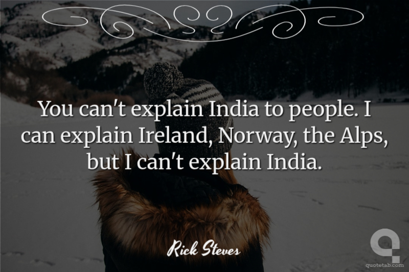 You can't explain India to people. I can explain Ireland, Norway, the Alps, but I can't explain India.