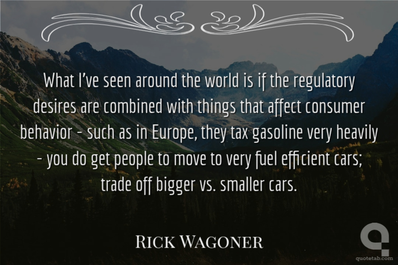 What I've seen around the world is if the regulatory desires are combined with things that affect consumer behavior - such as in Europe, they tax gasoline very heavily - you do get people to move to very fuel efficient cars; trade off bigger vs. smaller cars.