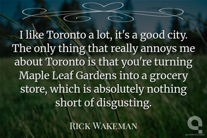 I like Toronto a lot, it's a good city. The only thing that really annoys me about Toronto is that you're turning Maple Leaf Gardens into a grocery store, which is absolutely nothing short of disgusting.