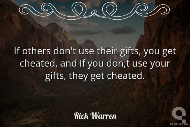 If others don't use their gifts, you get cheated, and if you don;t use your gifts, they get cheated.