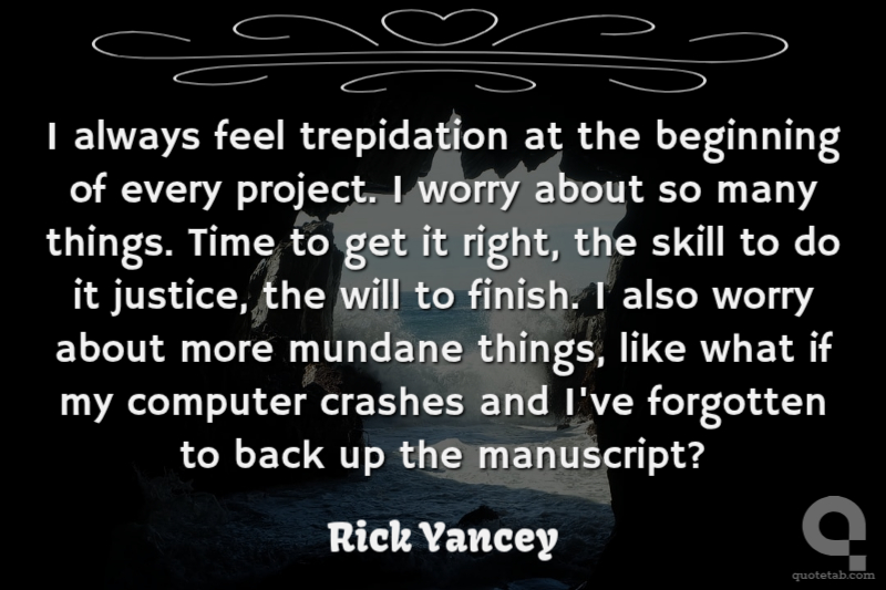 I always feel trepidation at the beginning of every project. I worry about so many things. Time to get it right, the skill to do it justice, the will to finish. I also worry about more mundane things, like what if my computer crashes and I've forgotten to back up the manuscript?