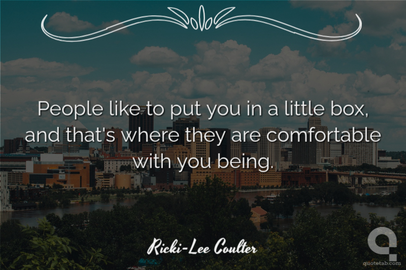 People like to put you in a little box, and that's where they are comfortable with you being.