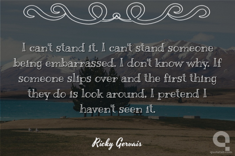 I can't stand it. I can't stand someone being embarrassed. I don't know why. If someone slips over and the first thing they do is look around, I pretend I haven't seen it.