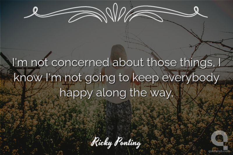 I'm not concerned about those things, I know I'm not going to keep everybody happy along the way,