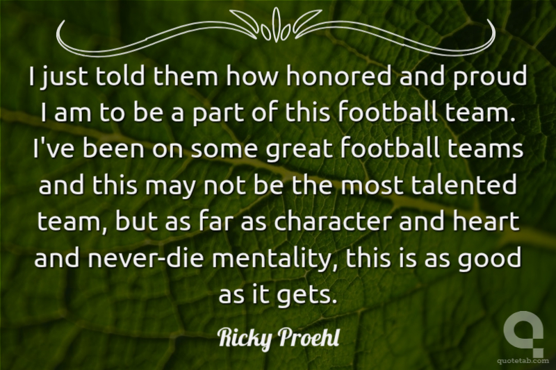 I just told them how honored and proud I am to be a part of this football team. I've been on some great football teams and this may not be the most talented team, but as far as character and heart and never-die mentality, this is as good as it gets.