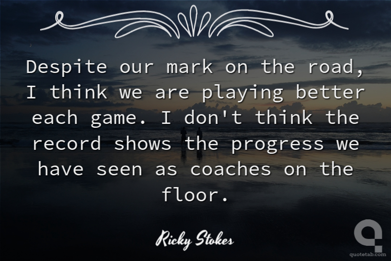 Despite our mark on the road, I think we are playing better each game. I don't think the record shows the progress we have seen as coaches on the floor.
