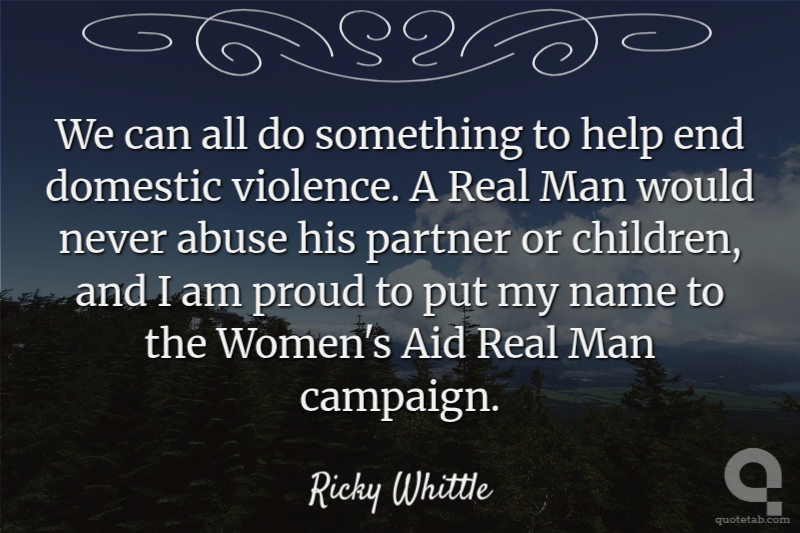 We can all do something to help end domestic violence. A Real Man would never abuse his partner or children, and I am proud to put my name to the Women's Aid Real Man campaign.