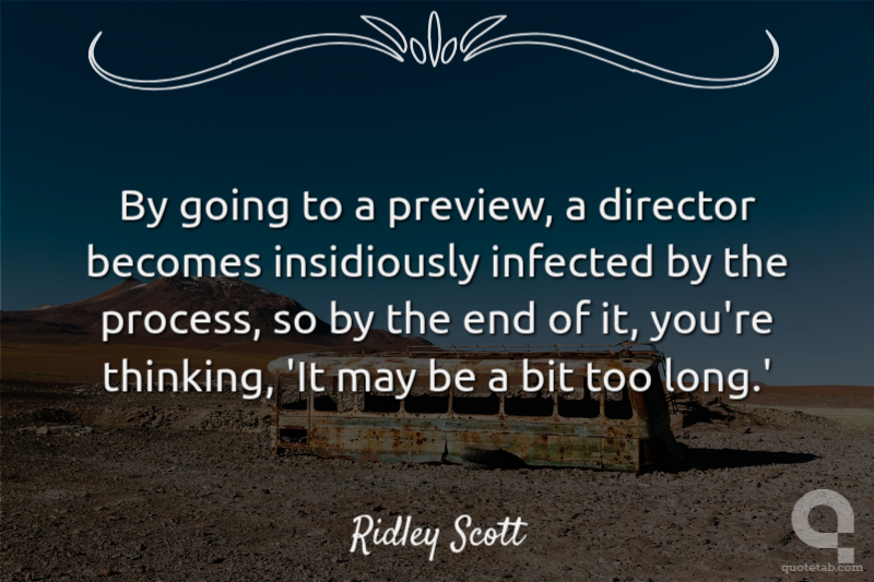 By going to a preview, a director becomes insidiously infected by the process, so by the end of it, you're thinking, 'It may be a bit too long.'