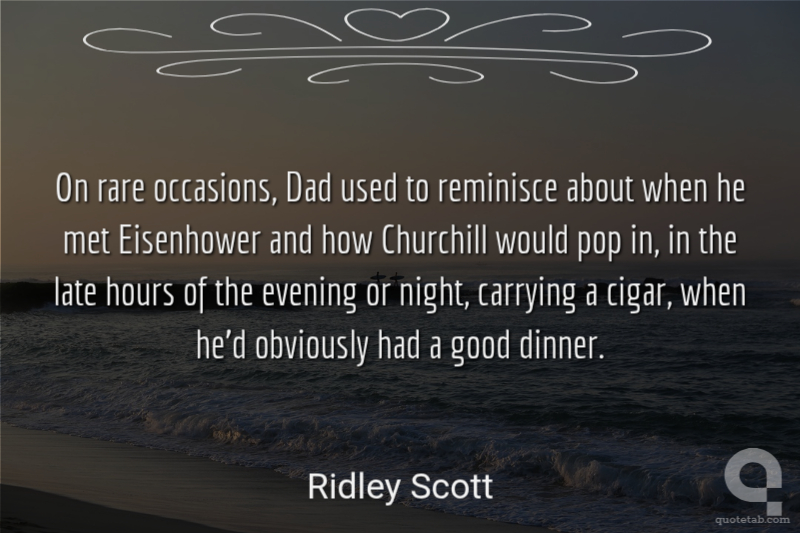On rare occasions, Dad used to reminisce about when he met Eisenhower and how Churchill would pop in, in the late hours of the evening or night, carrying a cigar, when he'd obviously had a good dinner.