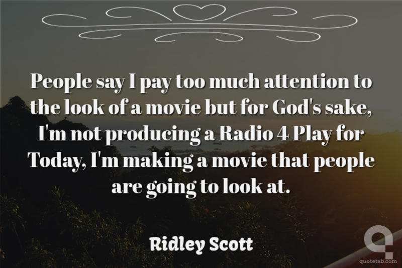 People say I pay too much attention to the look of a movie but for God's sake, I'm not producing a Radio 4 Play for Today, I'm making a movie that people are going to look at.