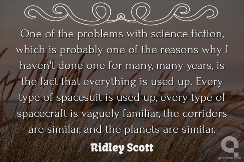 One of the problems with science fiction, which is probably one of the reasons why I haven't done one for many, many years, is the fact that everything is used up. Every type of spacesuit is used up, every type of spacecraft is vaguely familiar, the corridors are similar, and the planets are similar.