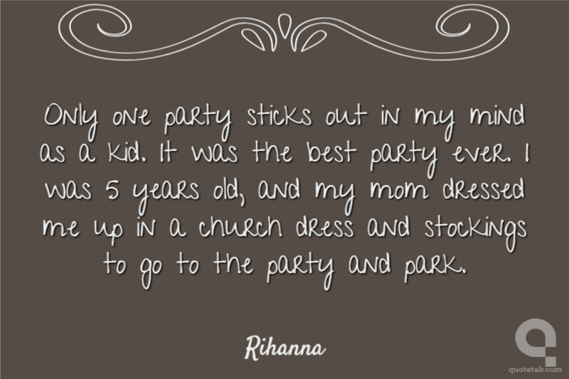 Only one party sticks out in my mind as a kid. It was the best party ever. I was 5 years old, and my mom dressed me up in a church dress and stockings to go to the party and park.