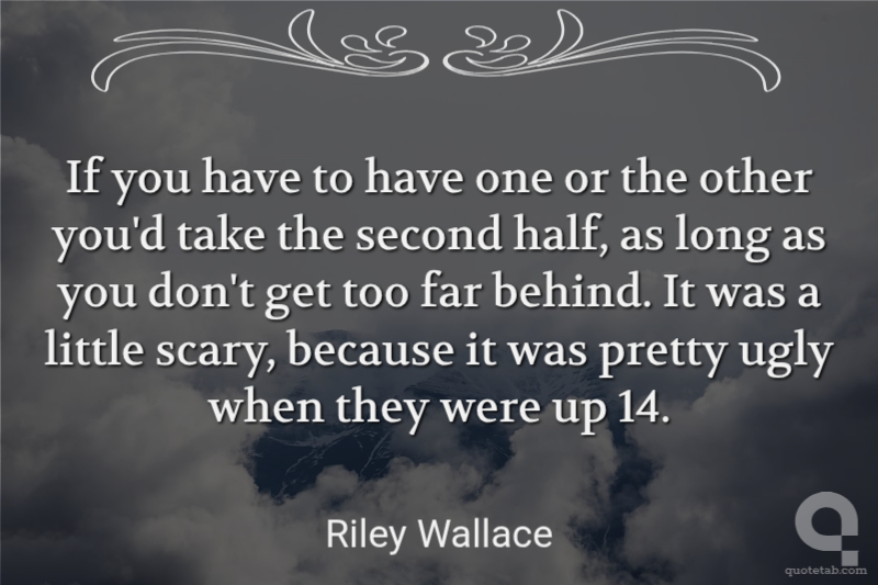 If you have to have one or the other you'd take the second half, as long as you don't get too far behind. It was a little scary, because it was pretty ugly when they were up 14.