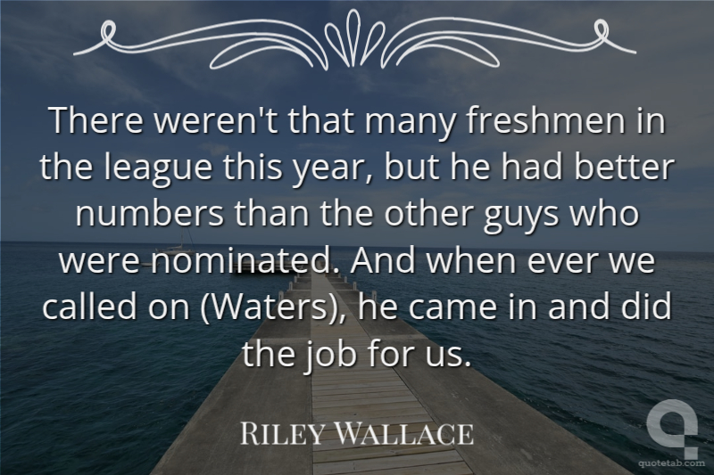 There weren't that many freshmen in the league this year, but he had better numbers than the other guys who were nominated. And when ever we called on (Waters), he came in and did the job for us.