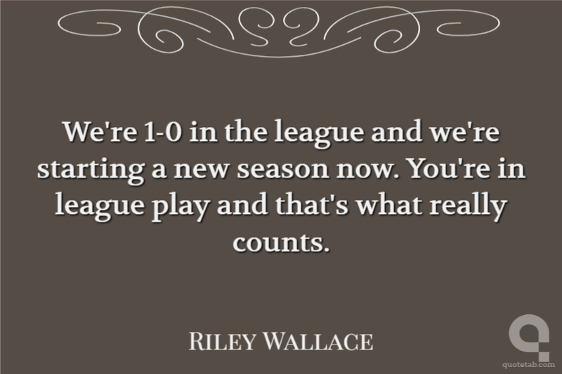 We're 1-0 in the league and we're starting a new season now. You're in league play and that's what really counts.