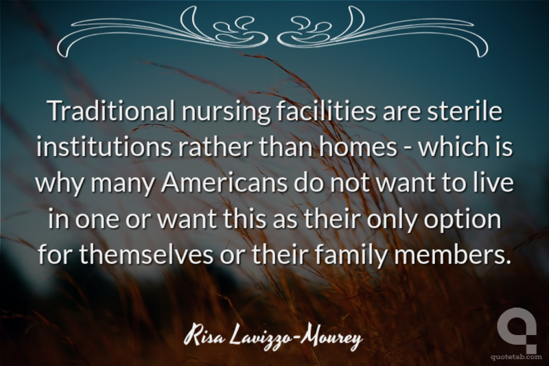 Traditional nursing facilities are sterile institutions rather than homes - which is why many Americans do not want to live in one or want this as their only option for themselves or their family members.