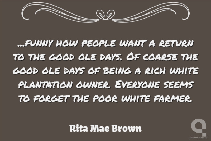 ...funny how people want a return to the good ole days. Of coarse the good ole days of being a rich white plantation owner. Everyone seems to forget the poor white farmer.