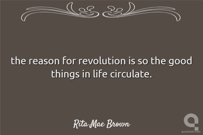 the reason for revolution is so the good things in life circulate.
