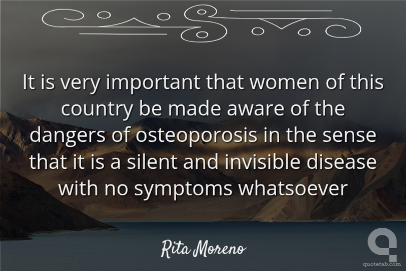 It is very important that women of this country be made aware of the dangers of osteoporosis in the sense that it is a silent and invisible disease with no symptoms whatsoever