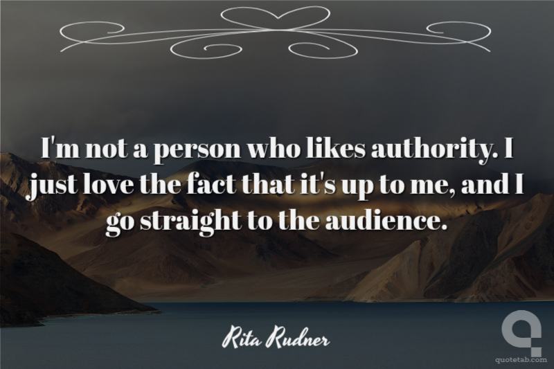 I'm not a person who likes authority. I just love the fact that it's up to me, and I go straight to the audience.