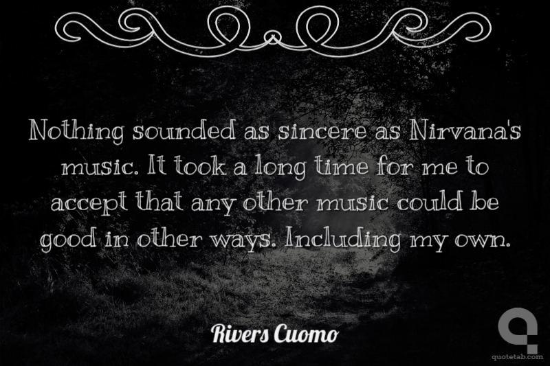Nothing sounded as sincere as Nirvana's music. It took a long time for me to accept that any other music could be good in other ways. Including my own.