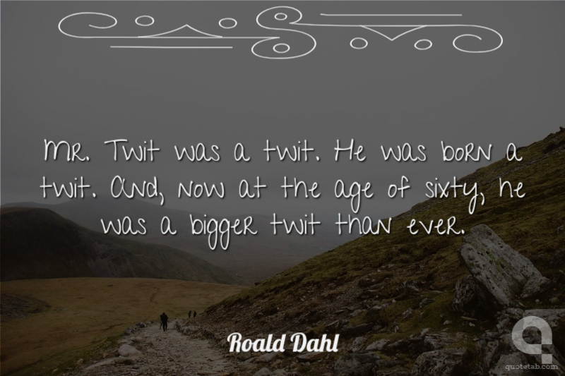 Mr. Twit was a twit. He was born a twit. And, now at the age of sixty, he was a bigger twit than ever.
