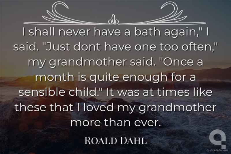 I shall never have a bath again," I said. "Just dont have one too often," my grandmother said. "Once a month is quite enough for a sensible child." It was at times like these that I loved my grandmother more than ever.